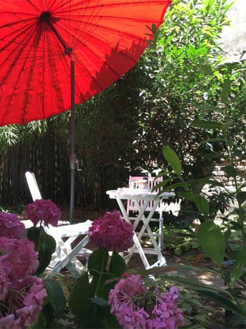 In unserem liebevoll gestalteten Sommergarten kannst du z. B. einen Latte Macchiato, Tee oder ein kühles Getränk genießen und neue Energie tanken.